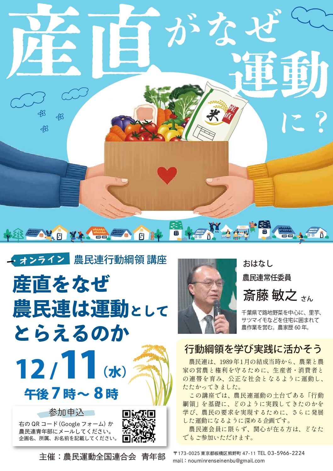 [行動綱領講座]産直がなぜ農民連は運動としてとらえるのか開催します