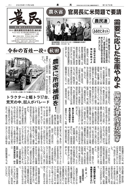 令和の百姓一揆@秋田 農家に所得補償を!(2025年11月24日 第1676号)