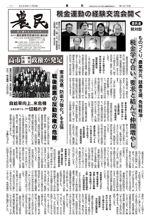 令和の百姓一揆@秋田 農家に所得補償を!(2025年11月24日 第1676号)