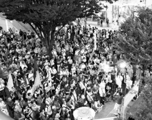 多くの人々が集まった抗議集会