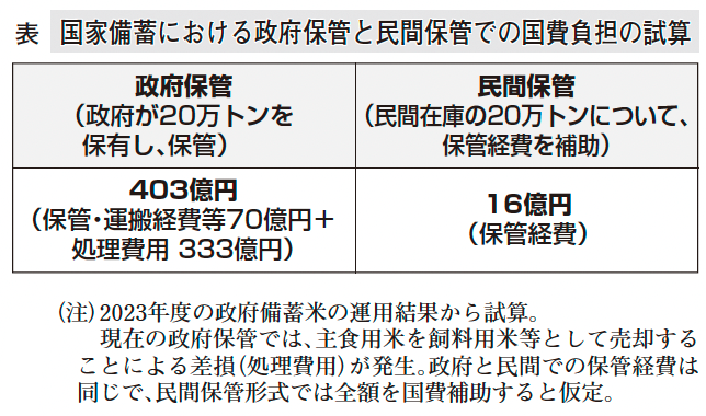 備蓄米については、「必要経費を支援することはやむを得ないとしても、民間在庫と合わせた保管に移行し、弾力的に活用する仕組みを検討すべき