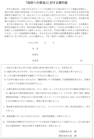 地域食健連で一緒に活動している団体へ呼びかけ、自治体・農協キャラバンの中で懇談・要請していきましょう。