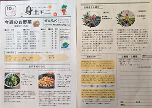 「かなちょく」では、どこで、どのような人が、どのように農産物を作ったのか。生産者の思いを物語として農産物と一緒に届け、消費者の記憶に残るよう、その表現にもこだわっています。産直ボックスに同封する会報紙「身土不二」は野菜と生産者の紹介、消費者の声を紹介しています。