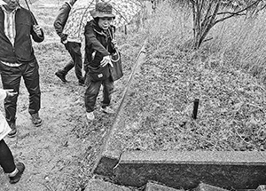 集会後は内灘町の液状化被害を調査。地元のみなさんから、液状化で波打ったままの地面や「側方流動」で大きくずれた土地などの状況の説明を受けました。