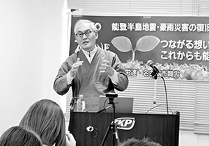 講演では能登半島地震被災者共同支援センターの黒梅明事務局長が「住み続けられる復興をめざす」と題して講演しました。