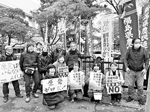 東京電力柏崎刈羽原発(新潟県)の再稼働容認を表明した花角英世・新潟県知事に抗議するために11月25日、新潟市の新潟県庁を囲む人間の鎖県庁一周アクションが行われ、新潟県農民連から30人が参加し、福島県からも駆けつけました。主催は「柏崎刈羽原発再稼働の是非を考える新潟県民ネットワーク」。