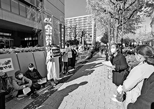 国民大運動実行委員会など3団体は11月26日、定例の国会前行動を行い、150人が参加しました。