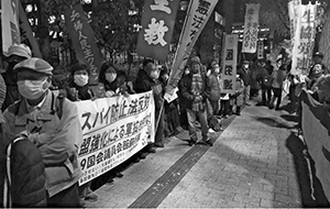 総がかり行動実行委員会は11月19日、「スパイ防止法反対! 日米同盟強化による軍拡を許すな! 国会議員会館前行動」を行い、800人が参加しました。(写真)