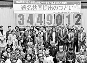 日本原水爆被害者団体協議会(日本被団協)は11月21日、「日本政府に核兵器禁止条約への署名・批准を求める署名」を日本原水協、原水禁と共同で提出するつどい開き、344万9012人分の署名を外務省に提出しました。