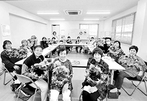 総会の後は、鹿行農民組合の高野京子さんを講師にしてクリスマスリース作りに挑戦しました。