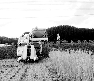 安全な米を届けたいと稲刈り