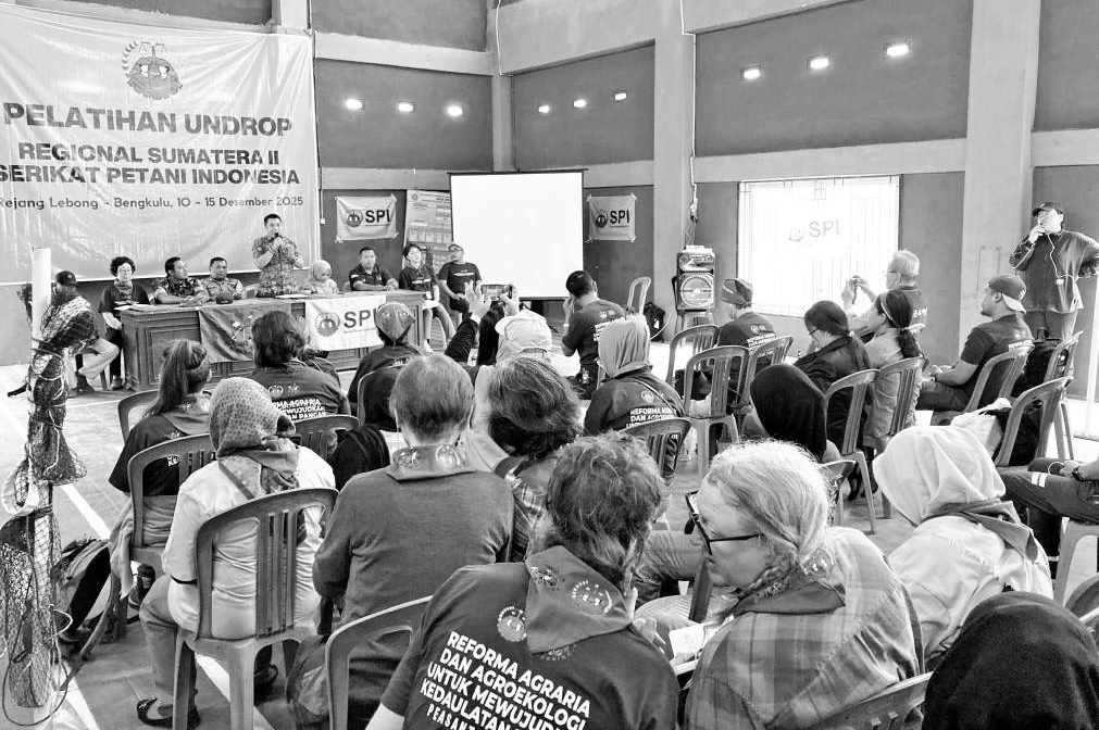 インドネシアのスマトラ島・ブンクルで、2025年12月8日から12日の5日間、国際農民組織ビア・カンペシーナ東南・東アジア地域会議が開催され、農民連から国際部の岡崎衆史部長と通訳者の千種享子さん、女性部から私、齊藤富喜子の3人が参加しました。会議にはインドネシアをはじめ、フィリピンや東ティモール、韓国、日本など9カ国11団体のほか、ミャンマーからもオブザーバー参加がありました。