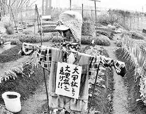 「大軍拡より大農拡を急げ!!」。しばらくかかしにがんばって訴えてもらいます。