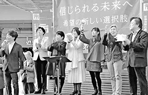 「安保法制の廃止と立憲主義の回復を求める市民連合」(市民連合)は2月22日、東京・有楽町で、市民と野党の共同アクション「信じられる未来へ 希望の新しい選択肢」を開催しました。