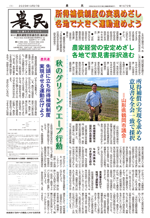 所得補償は自給率向上への重要なステップ 一致点を広げ制度実現へ空前の国民運動を(2025年10月20日 第1671号)