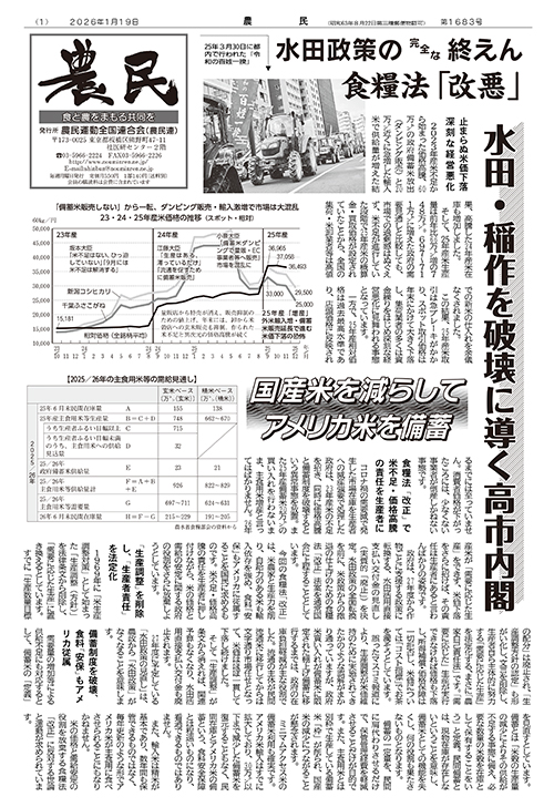 衆議院解散・総選挙 自民党農政終わらせるチャンス!(2026年01月26日 第1684号)