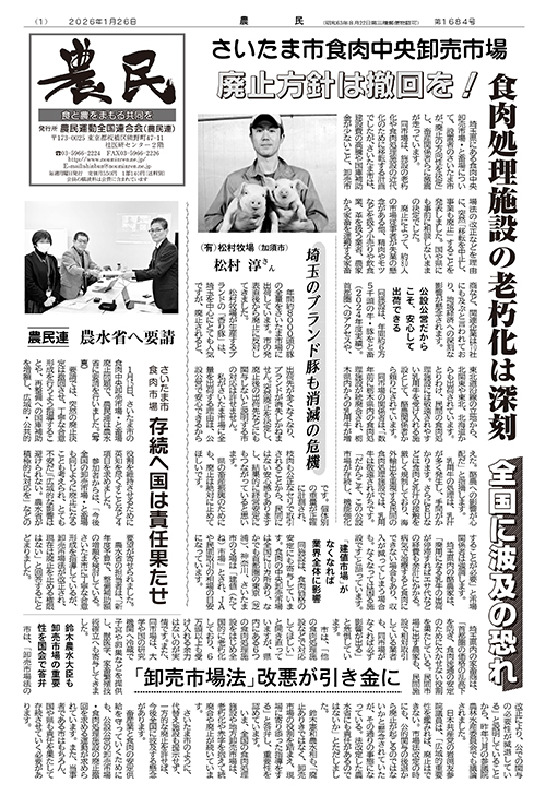さいたま市食肉市場 存続へ国は責任果たせ(2026年01月26日 第1684号)
